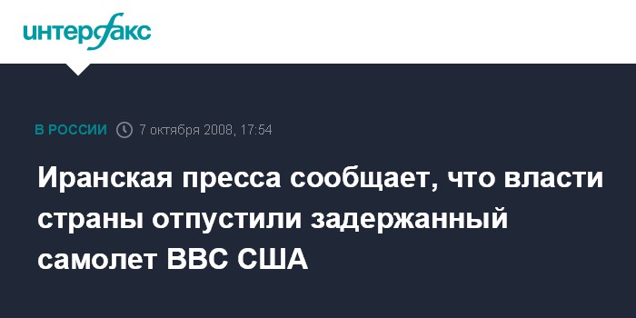 Тегеран/Вашингтон. 7 октября. INTERFAX.RU - Американскому самолету, нарушившему иранское воздушное пространство, разрешено покинуть территорию Ирана, сообщает агентство "Фарс".