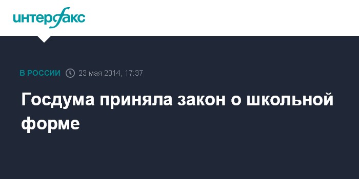 Москва. 23 мая. INTERFAX.RU - Госдума приняла во втором и третьем чтениях закон, дающий право школам устанавливать требования к форме, но с учетом мнения обучающихся и их родителей.