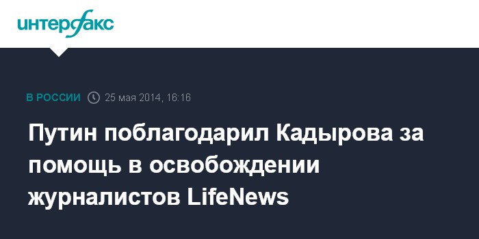 Путин поблагодарил Кадырова за помощь в освобождении журналистов LifeNews