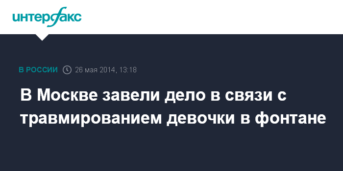 В Москве завели дело в связи с травмированием девочки в фонтане
