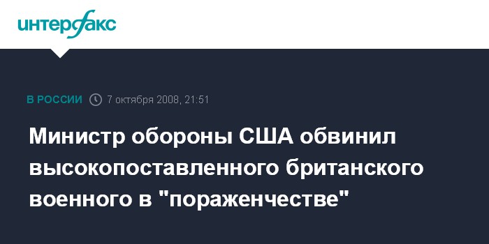 Министр обороны США обвинил высокопоставленного британского военного в "пораженчестве"