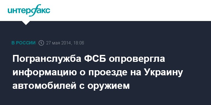 Москва. 27 мая. INTERFAX.RU - Пограничное управление ФСБ России по Ростовской области официально опровергло сообщение украинских пограничников о том, что государственную границу со стороны РФ на Украину пересекли автомобили, в которых находились оружие и вооруженные люди.