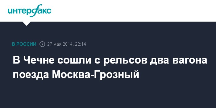 Москва. 27 мая. INTERFAX.RU - В Наурском районе Чеченской республики сошли с рельсов два вагона поезда Москва-Грозный, сообщил по телефону "Интерфаксу" представитель главного управления МЧС РФ по Чечне.