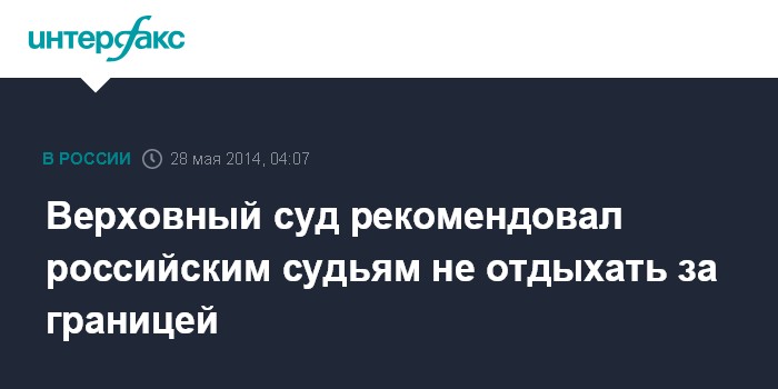 Верховный суд рекомендовал российским судьям не отдыхать за границей