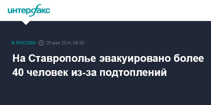 Москва. 28 мая. INTERFAX.RU - В двух населенных пунктах Шпаковского района Ставрополья, где ранее был введен режим ЧС, ликвидируют последствия подтопления, сообщает Северо-Кавказский региональный центр МЧС России.
