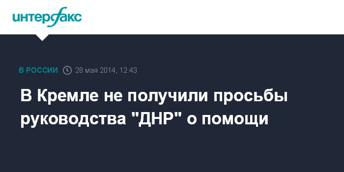 Москва. 28 мая. INTERFAX.RU - В Кремле не видели обращения премьера "Донецкой народной республики" Дениса Пушилина, обратившегося за помощью к российской стороне.