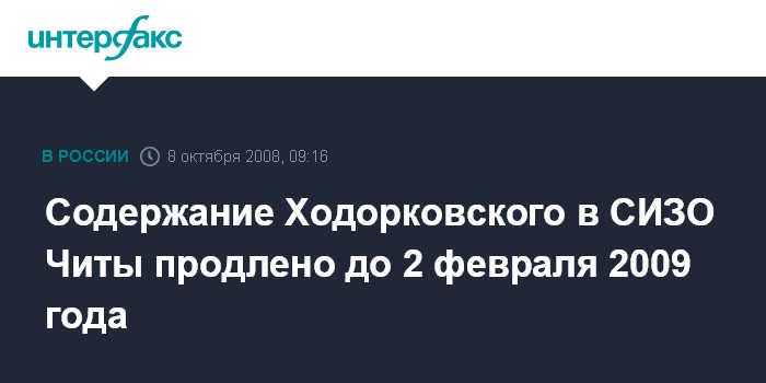 Содержание Ходорковского в СИЗО Читы продлено до 2 февраля 2009 года
