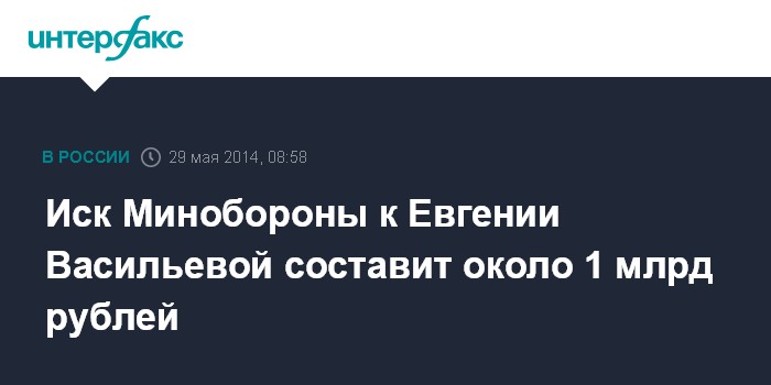 Иск Минобороны к Евгении Васильевой составит около 1 млрд рублей