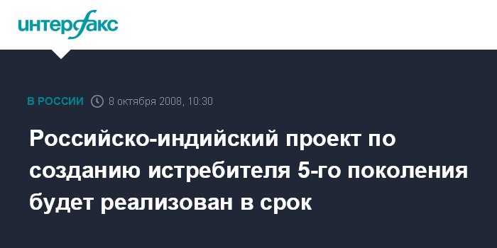 "Работы идут по ранее утвержденному плану, ничего не останавливается. Я уверен, что самолет взлетит в те сроки, которые были оговорены. И далее все будет идти по плану", - сказал М.Дмитриев журналистам на международной выставке вооружений и военной техники "Дефендори Интернэшнл-2008" в Афинах. Он уточнил, что речь идет об участии индийской стороны в том варианте боевого самолета пятого поколения, "над которым Россия уже работала и работает".