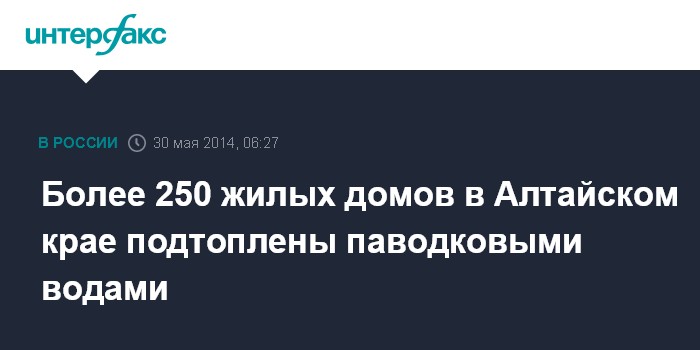Москва. 30 мая. INTERFAX.RU - В результате резкого подъема воды в реках Алтайского края подтоплены более 250 живлых домов в селе Чарыш и наукограде Бийске, сообщает в пятницу Сибирский региональный центр МЧС РФ.