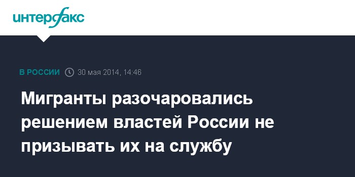 Москва. 30 мая. INTERFAX.RU - Президент Федерации мигрантов России (ФМР) Амин Маджумдер заявил, что огорчен позицией Минобороны, которое признало нецелесообразным призывать на службу в Вооруженные силы мигрантов, проживающих сейчас на территории России.