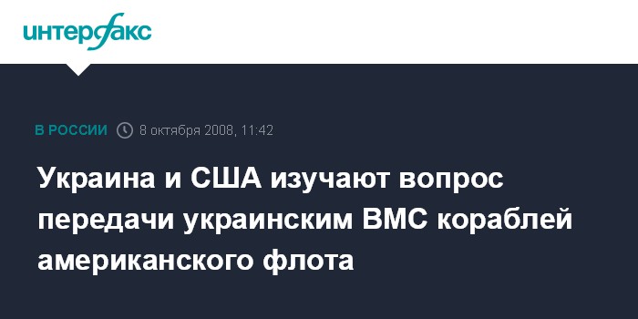 Москва. 8 октября. INTERFAX.RU - Украина и США изучают вопрос передачи украинским Военно-морским силам судов американского флота.