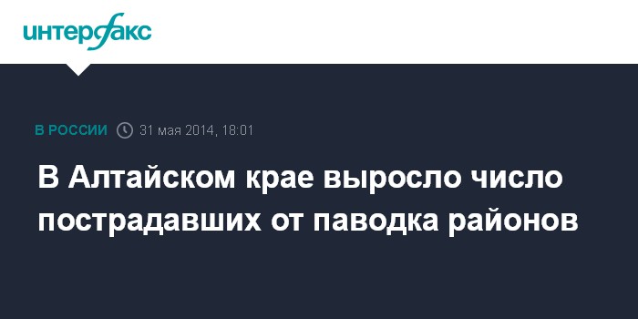 Москва. 31 мая. INTERFAX.RU - В Алтайском крае растет число территорий, пострадавших от паводка: началось подтопление в Шипуновском районе, сообщили в субботу "Интерфаксу" в пресс-центре ГУ МЧС РФ по региону.