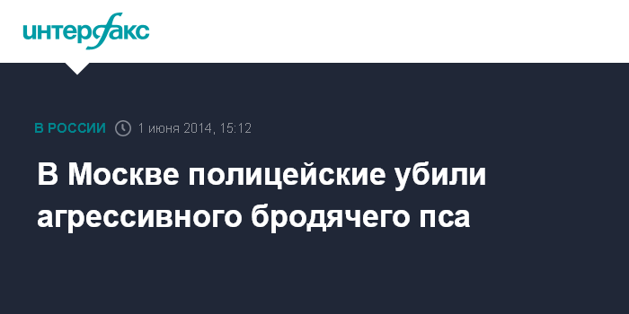 Москва. 1 июня. INTERFAX.RU - Сотрудникам столичной полиции пришлось застрелить крупную бродячую собаку, которая агрессивно себя вела, сообщили "Интерфаксу" в пресс-службе ГУ МВД России по Москве.