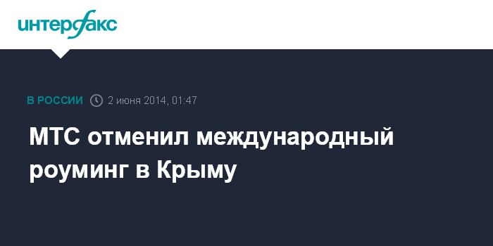 Москва. 2 июня. INTERFAX.RU - ОАО "Мобильные телесистемы" с 1 июня снизило стоимость роуминга в Крыму до внутрироссийского уровня, сообщили "Интерфаксу" в понедельник в компании.