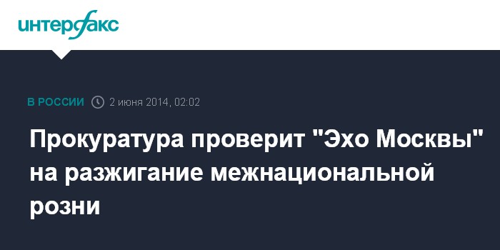Москва. 2 июня. INTERFAX.RU - В конце мая, после обращения экс-блогера "Эха Москвы" Юрия Штамова, прокуратура Москвы по распоряжению Генпрокуратуры проверит сайт радиостанции на разжигание межнациональной розни и унижения человеческого достоинства, сообщает газета "Известия".