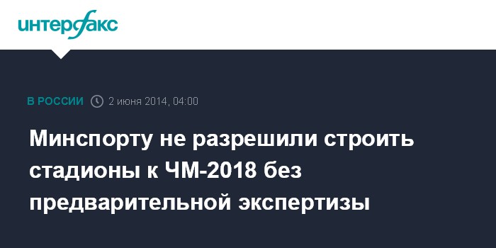 Как пишет издание, один из кураторов подготовки к чемпионату мира по футболу в 2018 году - Министерство спорта - предлагает начать строить стадионы за счет средств бюджета страны, не дожидаясь положительного заключения государственной экспертизы. Это следует из имеющейся в распоряжении газеты копии протокола совещания у заместителя главы Минэкономики Евгения Елина. В ведомстве отмечают, что это позволило бы ускорить строительство спортивных арен, не сорвав сроки их сдачи.