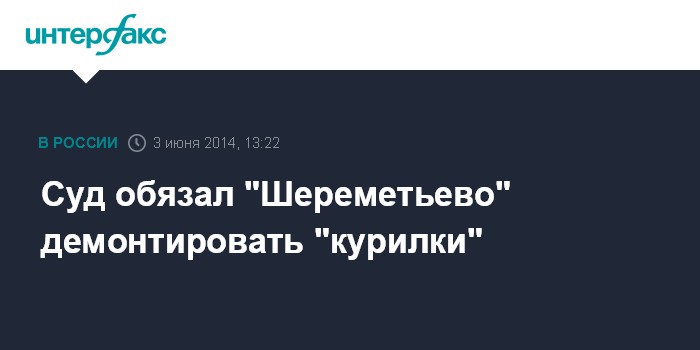 Москва. 3 июня. INTERFAX.RU - Химкинский городской суд обязал международный аэропорт "Шереметьево" демонтировать курительные комнаты.