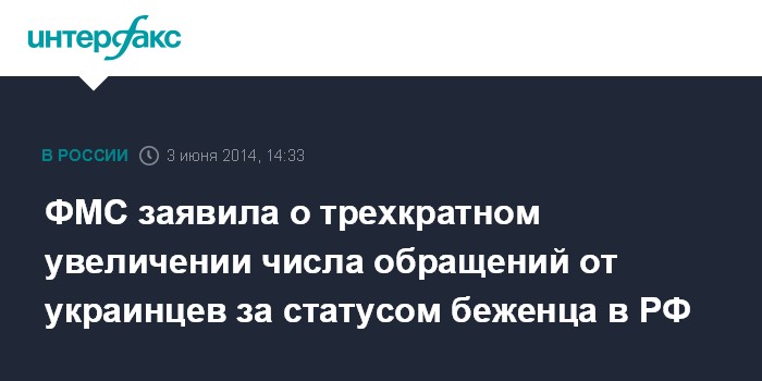 ФМС заявила о трехкратном увеличении числа обращений от украинцев за статусом беженца в РФ