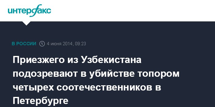 Приезжего из Узбекистана подозревают в убийстве топором четырех соотечественников в Петербурге