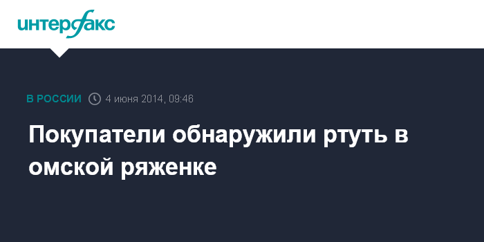 Москва. 4 июня. INTERFAX.RU - Покупатели обнаружили ртуть в ряженке, купленной в одном из супермаркетов Омска. Сейчас по данному факту проводится проверка, сообщили в пресс-службе облпрокуратуры в среду.