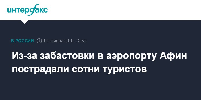 Москва. 8 октября. INTERFAX.RU - В афинском аэропорту "Элефтериос Венезелиос" в среду проходит однодневная предупредительная забастовка служащих и рабочих, протестующих против планов правительства Греции по продаже национального перевозчика - авиакомпании Olympic Airlines, сообщили порталу "Интерфакс-Туризм" в московском представительстве авиакомпании.