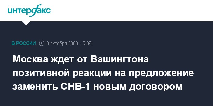Москва ждет от Вашингтона позитивной реакции на предложение заменить СНВ-1 новым договором