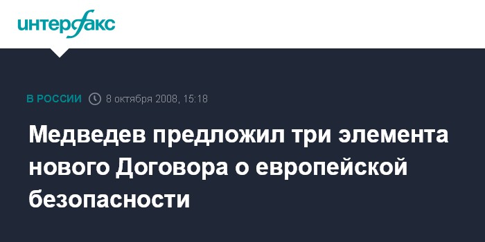 Эвиан. 8 октября. INTERFAX.RU - Новый Договор о европейской безопасности должен следовать принципу трех "не", считает президент РФ Дмитрий Медведев.
