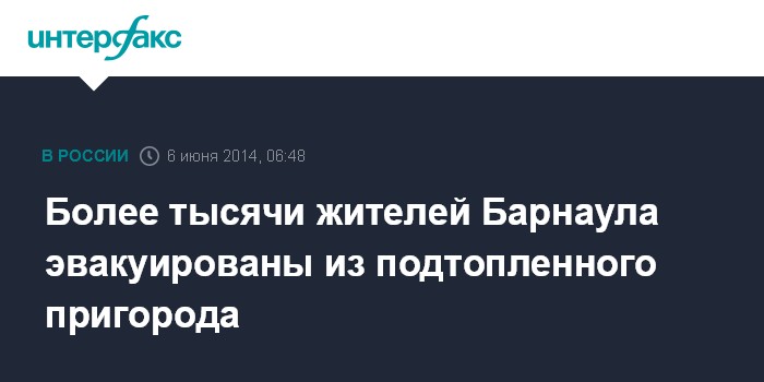 Москва. 6 июня. INTERFAX.RU - 950 жителей микрорайона Барнаула Затон эвакуировались из своих домов, еще 111 человек эвакуированы организованно в пункты временного размещения и больницы, сообщил в пятницу пресс-центр мэрии города.