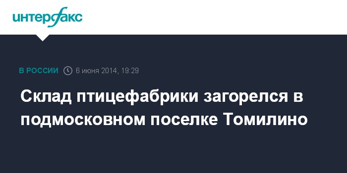 Москва. 6 июня. INTERFAX.RU - В Люберецком районе Подмосковья горит склад птицефабрики, информации о пострадавших нет, сообщил "Интерфаксу" источник в экстренных службах региона.