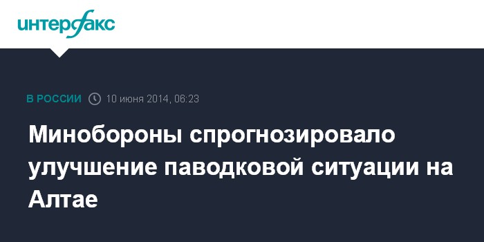 Москва. 10 июня. INTERFAX.RU - Паводковая ситуация в Алтайском крае в ближайшие дни пойдет на спад, если не будет дождей, эвакуации жителей не ожидается, сообщил журналистам в ночь с понедельника на вторник замминистра обороны РФ генерал армии Дмитрий Булгаков.