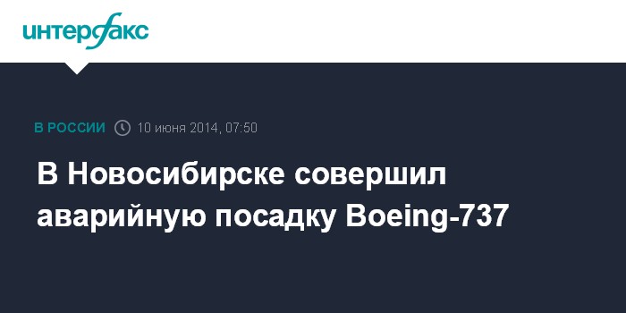 Москва. 10 июня. INTERFAX.RU - Самолет Boeing-737, следовавший с Кипра в Новосибирск, совершил аварийную посадку в аэропорту "Толмачево" во вторник, сообщает ГУ МЧС России по региону