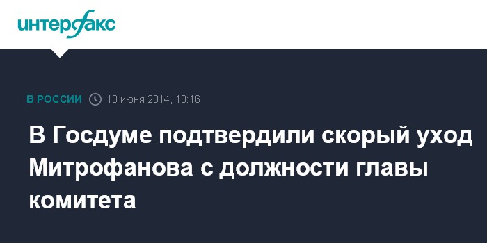Москва. 10 июня. INTERFAX.RU - Алексей Митрофанов, скорее всего, в ближайшее время лишится должности главы комитета Госдумы по информационной политике, информационным технологиям и связи, подтвердил вице-спикер Госдумы, лидер фракции "Единая Россия" Владимир Васильев.
