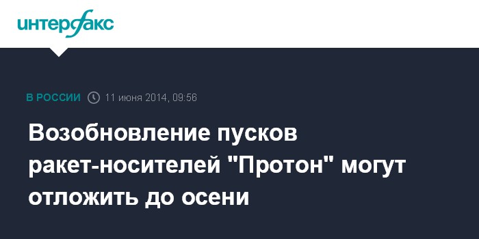 "Перенос возобновления запусков "Протонов" на осень чреват корректировками планов запусков на 2014 год как по федеральной, так и по коммерческой программам, поскольку в дальнейшем число запусков, возможных в текущем году, будет ограничено пропускной способностью заправочной станции разгонных блоков "Бриз-М", используемых с ракетами-носителями "Протон-М", - сказал источник.