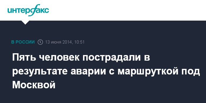 Москва. 13 июня. INTERFAX.RU - Пять человек пострадали в результате автоаварии с участием маршрутки и легкового автомобиля в подмосковной деревне Горки, сообщает ГУ МЧС по Московской области.