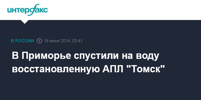 Москва. 16 июня. INTERFAX.RU - Атомная подводная лодка проекта 949-А "Томск", горевшая в сентябре прошлого года в доке завода "Звезда" в Приморье, успешно спущена после ремонта на воду.