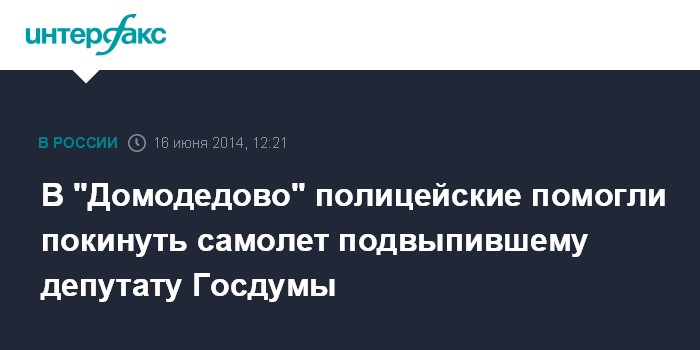 Москва. 16 июня. INTERFAX.RU - Полицейские в понедельник помогли покинуть самолет, прилетевший в столичный аэропорт "Домодедово", пассажиру, который оказался депутатом Госдумы.