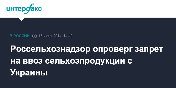 Россельхознадзор опроверг запрет на ввоз сельхозпродукции с Украины