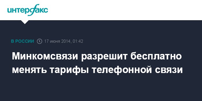Москва. 17 июня. INTERFAX.RU - Минкомсвязи подготовило новые правила оказания услуг связи, которые, в частности, дают возможность абонентам бесплатно менять тарифы телефонной связи, сообщает газета "Известия".