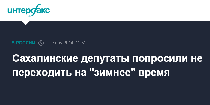 Москва. 19 июня. INTERFAX.RU - Депутаты Сахалинской облдумы на заседании в четверг единогласно высказались против внесения изменений в постановление правительства РФ "О составе территорий, образующих каждую часовую зону и порядке исчисления времени в часовых зонах" в части перехода на зимнее время.