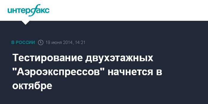 Москва. 19 июня. INTERFAX.RU - Поставка в Россию двухэтажных "Аэроэкспрессов" начнется в октябре 2014 года, сообщили "Интерфаксу" в пресс-службе департамента транспорта и развития дорожно-транспортной инфраструктуры Москвы в четверг.