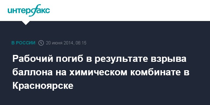 Рабочий погиб в результате взрыва баллона на химическом комбинате в Красноярске
