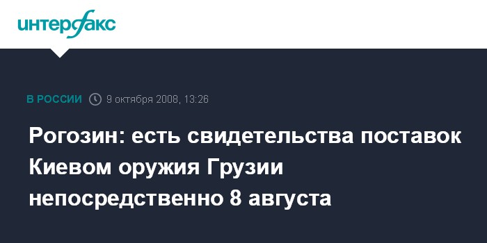 Рогозин: есть свидетельства поставок Киевом оружия Грузии непосредственно 8 августа