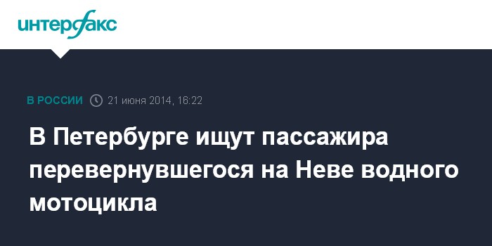 Москва. 21 июня. INTERFAX.RU - Водный мотоцикл с двумя людьми перевернулся в акватории Невы в Петербурге в субботу днем, сообщается на сайте ГУ МЧС по Санкт-Петербургу.