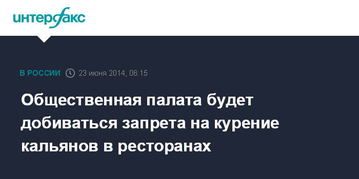 Москва. 23 июня. INTERFAX.RU - Представители Общественной палаты проведут рейды по ресторанам с тем, чтобы выявить те, где курят кальяны и подготовить предложения по введению штрафов за их использование или полному запрету, сообщает газета "Известия" со ссылкой на члена Общественной палаты РФ, руководителя федерального проекта Трезвая Россия" Руслана Хамзаева.