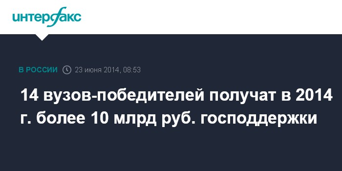 14 вузов-победителей получат в 2014 г. более 10 млрд руб. господдержки