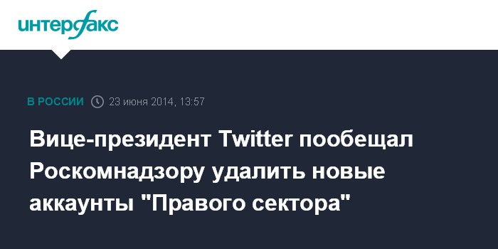 Вице-президент Twitter пообещал Роскомнадзору удалить новые аккаунты "Правого сектора"