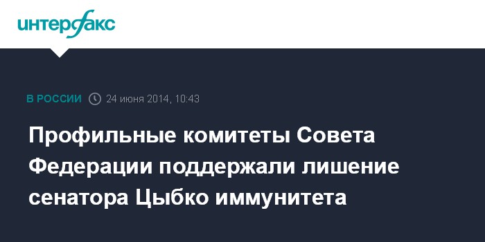 Москва. 24 июня. INTERFAX.RU - Комитет по конституционному законодательству и комитет по регламенту Совета Федерации на заседании во вторник высказались за лишение неприкосновенности сенатора от Челябинской области Константина Цыбко, которому Генпрокуратура и СКР инкриминируют получение взятки в размере 28 млн рублей.