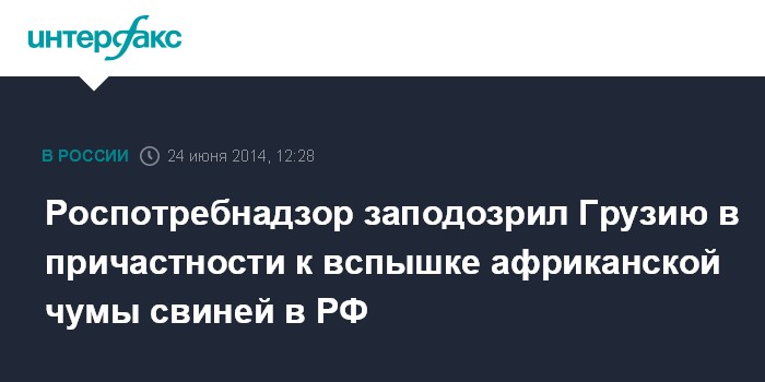 Москва. 24 июня. INTERFAX.RU - Главный санитарный врач РФ Анна Попова считает небезосновательной версию о том, что вирус африканской чумы свиней (АЧС) был завезен в Россию из Грузии.