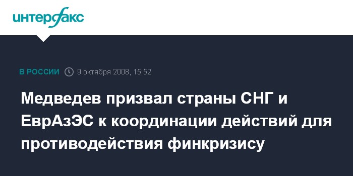 Медведев призвал страны СНГ и ЕврАзЭС к координации действий для противодействия финкризису